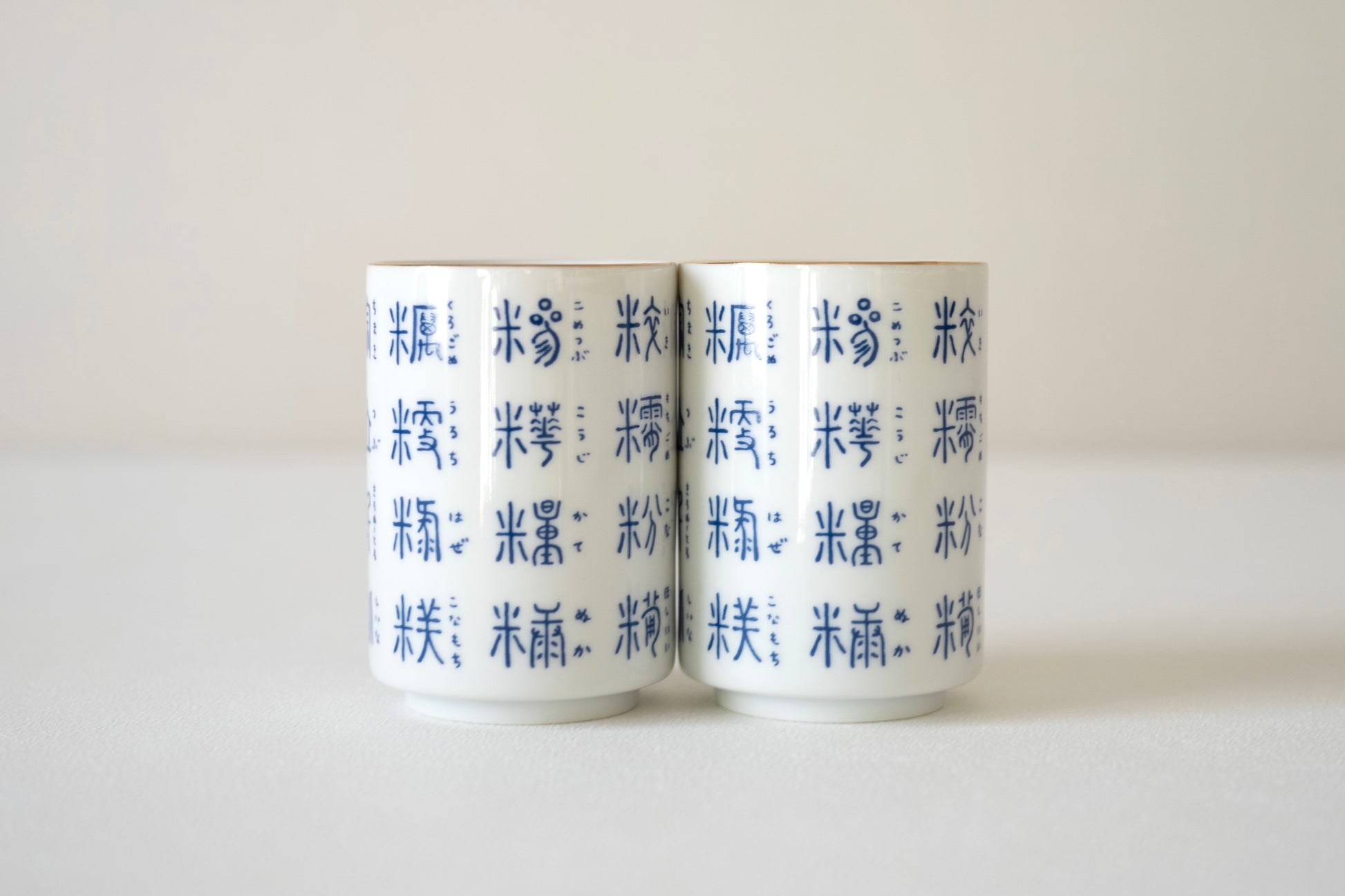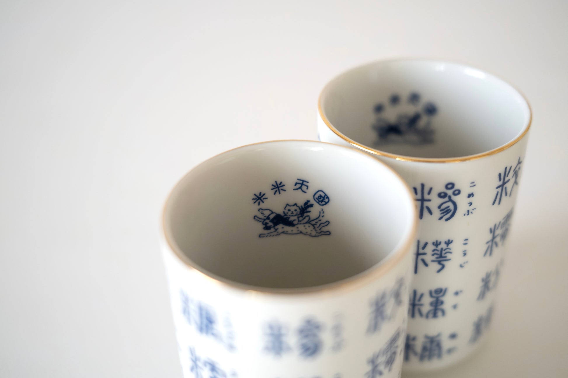 お寿司屋さんの湯のみを篆書体でパロディした睡眠民具さんのネコちゃんとジャックのコラボの湯のみです。のはらのお米にちなんで 「米米天国」周囲には米へんの漢字が32文字。ジャックと睡眠民具さんの看板ネコちゃんが内側にプリントされています。底部分にはのはらのロゴのNO。とっても可愛い湯のみに仕上がりました! きっと気に入っていただけると思います(^^)